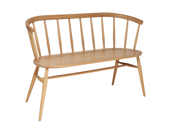A true statement piece, the Heritage Loveseat showcases graceful curves, refined tapered legs, and beautifully crafted spindles, all anchored by a flowing curved back rail. Designed as a contemporary seat for two, it works effortlessly around a dining table or as a feature piece in a hallway or bedroom. It is offered in two sophisticated finishes—dead matt lacquer or dramatic black—and can be personalised with upholstery from the ercol and Universal fabric collections.